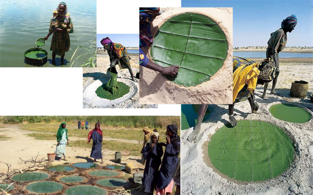 En Afrique, autour du lac Tchad, certaines populations consomment depuis des siècles, une spiruline locale appelée « dihé ». Elle est récoltée, séchée au soleil et intégrée dans des sources traditionnelles. Cette pratique existe encore aujourd’hui.
